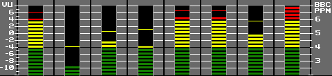 The metering scale used is user configurable to one of 9 different metering scales, with relevant ballistics. The metering scales available are: Dual PPM + Standard VU, EBU PPM, BBC PPM, Nordic PPM, AES Digital PPM, DIN PPM, German PPM, SMPTE RP.0155, Standard VU & Extended VU.
