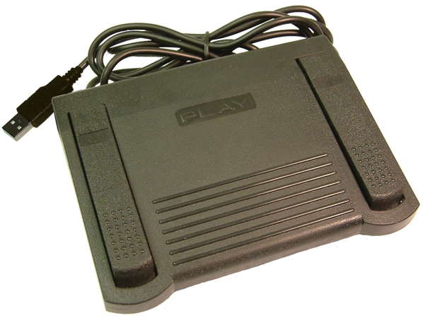 The D:Scribe DS-FPS3 is a foot-pedal (3 pedals) with a 9 pin serial connector and the D:Scribe DS-FPU3 is a foot-pedal (3 pedals) with a USB connector (shown above). Both are used with D:Scribe software and can control the Play/Pause, Forward & Rewind buttons.