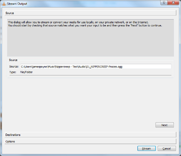 RTP VLC to Pro Audio Streamer PS-PLAY/PS-AMP (so opening a file on a PC and streaming it to a Pro Audio Streamer PS-PLAY).
