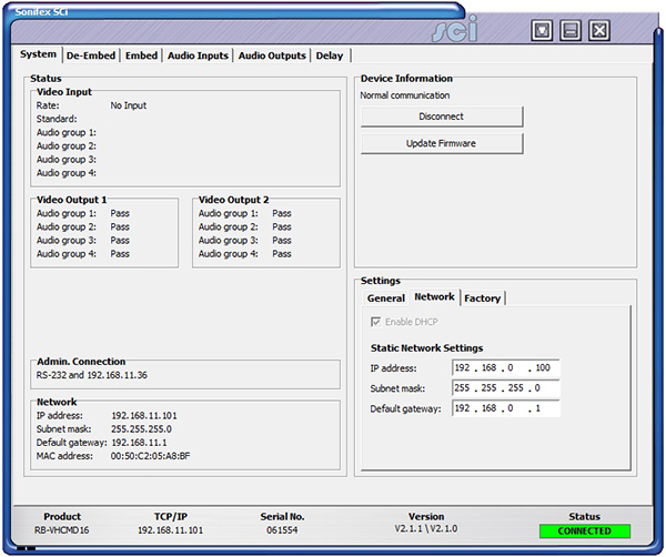 This product has settings that can be adjusted using the Sonifex SCi (Serial Control Interface) software. To download a copy of the SCi software, please use this link >